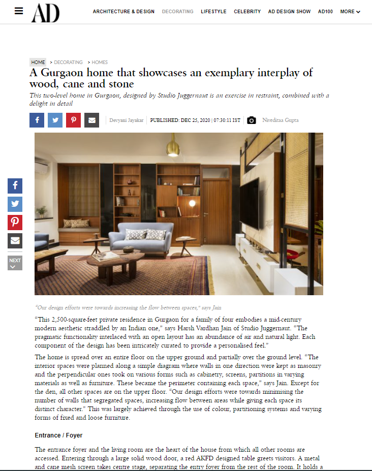 A Gurgaon home that showcases an exemplary interplay of wood, cane and stoneDecember 2020