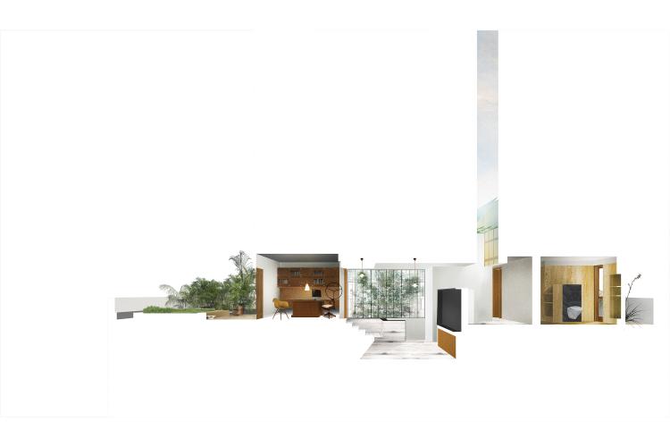 This intimate & cohesively designed 800 sq. ft self-contained apartment in New Delhi has been conceived with the idea of creating a home for functionality & unique identities of the occupant couple under one roof. The apartment was an existing structure on the top floor of a shared residence & hence the design scheme utilized the pragmatic usage of the limited area available. The design process focused on creating an authentic abode that stemmed from gaining an astute understanding of the couple’s functional needs interlaced with elemental nuances that were distinctive to their personalities. The apartment layout utilizes a minimal number of walls to create a demarcation amidst contiguous zones. A distinction between spaces has been additionally created using a play of varying volumes & levels.