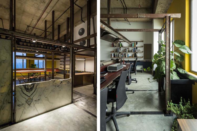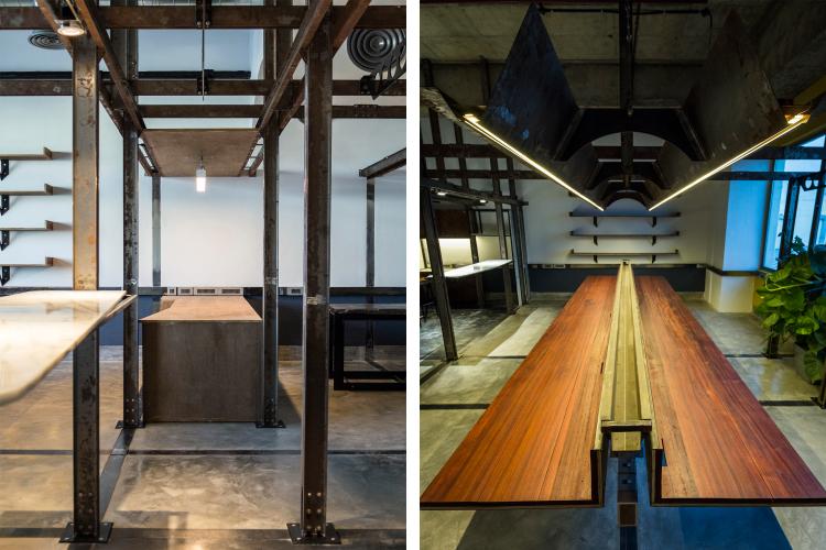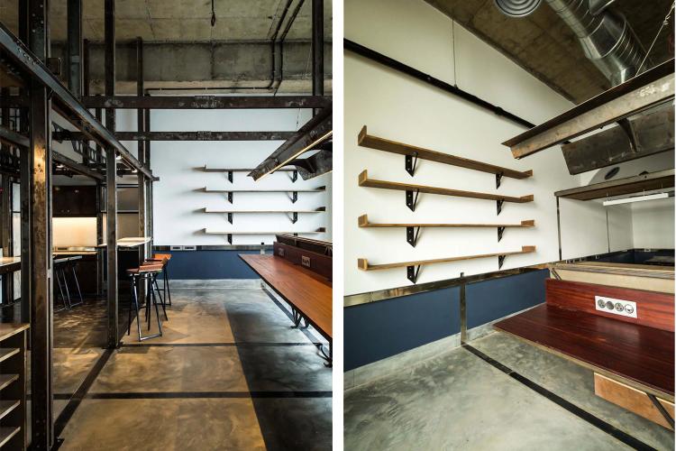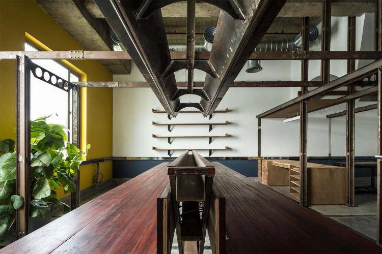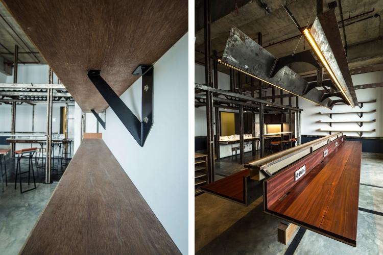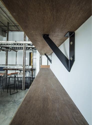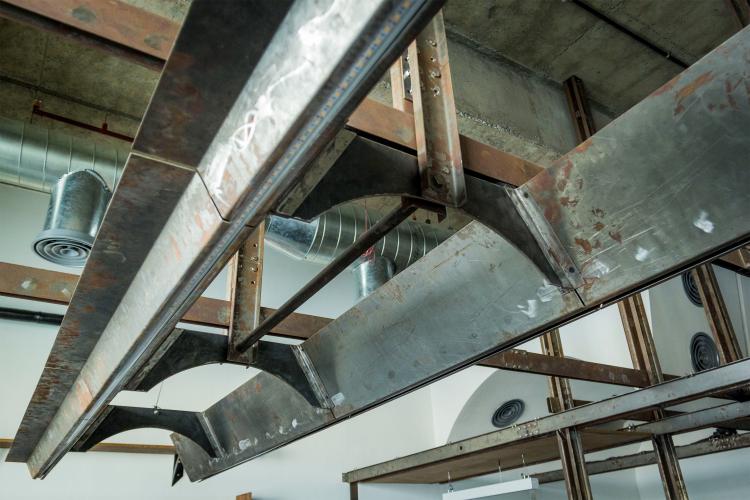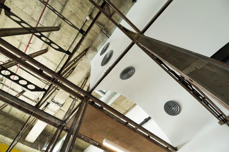 The first is the insertion of an infrastructure piece that acts as a flexible frame. This frame behaves as an organizing grid for the required activities / functions that need to be incorporated within the space. The frame primarily carries electrical conduits that lend to the dimension of the custom fabricated channels. The channels work as a modular system, and their built-up sections allow for intersections in the x/y/z axes. Further the flexibility of the system is tested through the way other objects attach themselves to the frame. Sometimes resting or slipping past or getting fastened, following and sometimes breaking the grid.