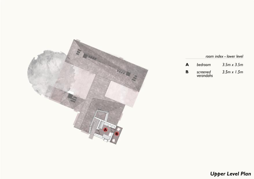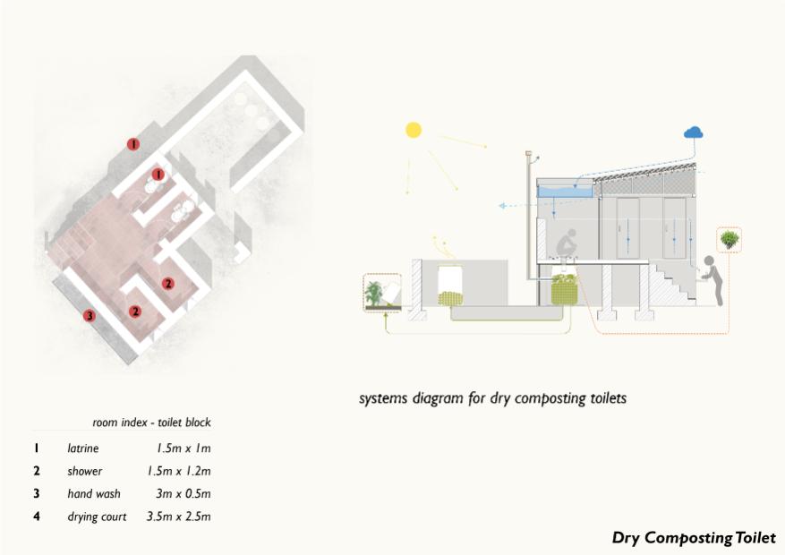 Bridging public and private faces. As it is designed, the house serves as a bridge between “public-” and “private”-facing functions of family life. The double-storey entrance block (which includes the living room) creates a vantage across the pastures to observe in- and out-going flows of people. Meanwhile, at the far opposite North corner of the house, self-contained and hygienic dry composting toilets are privately situated.