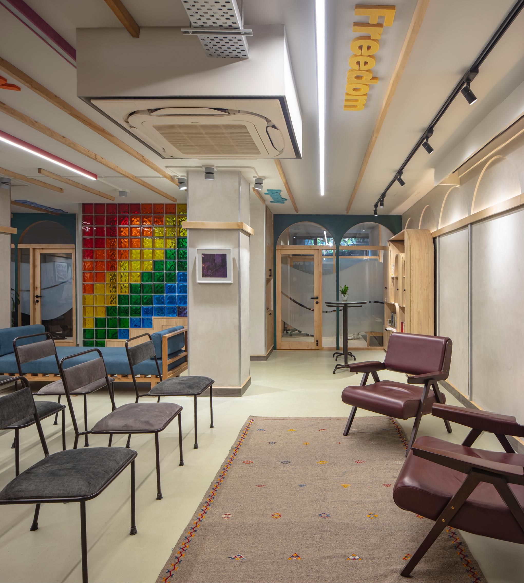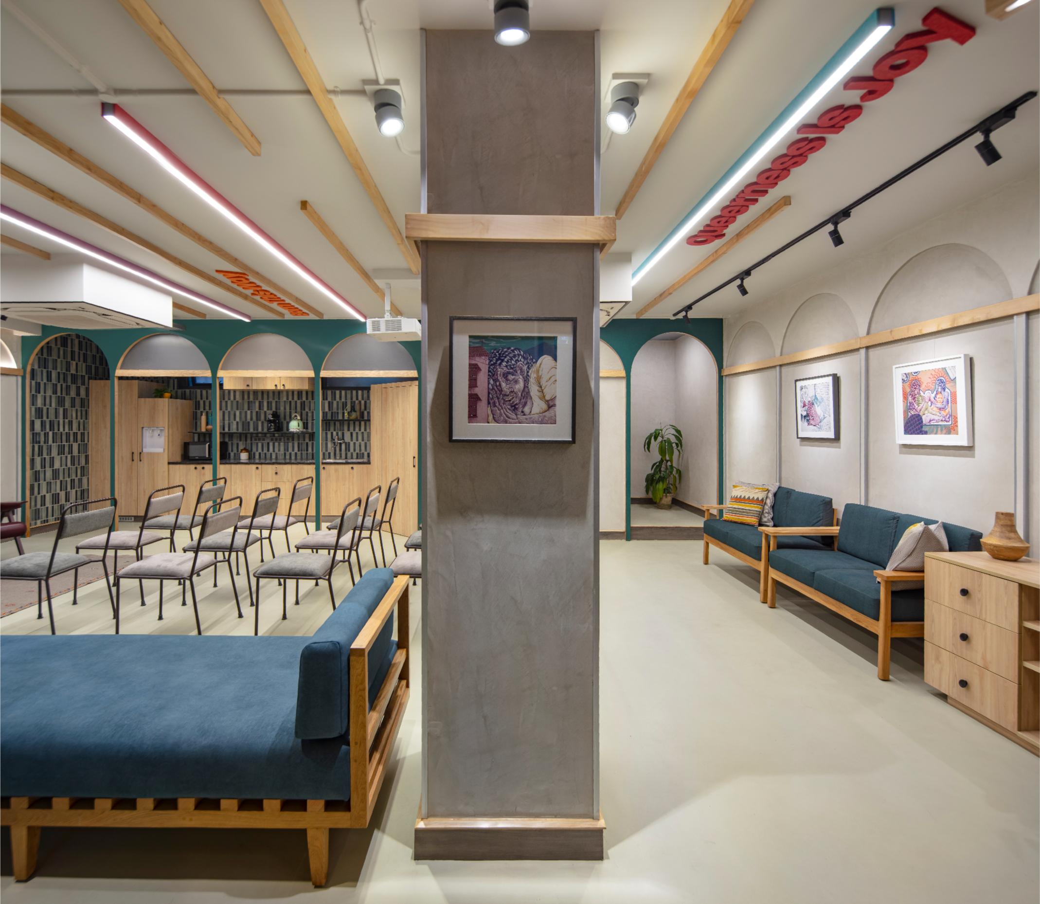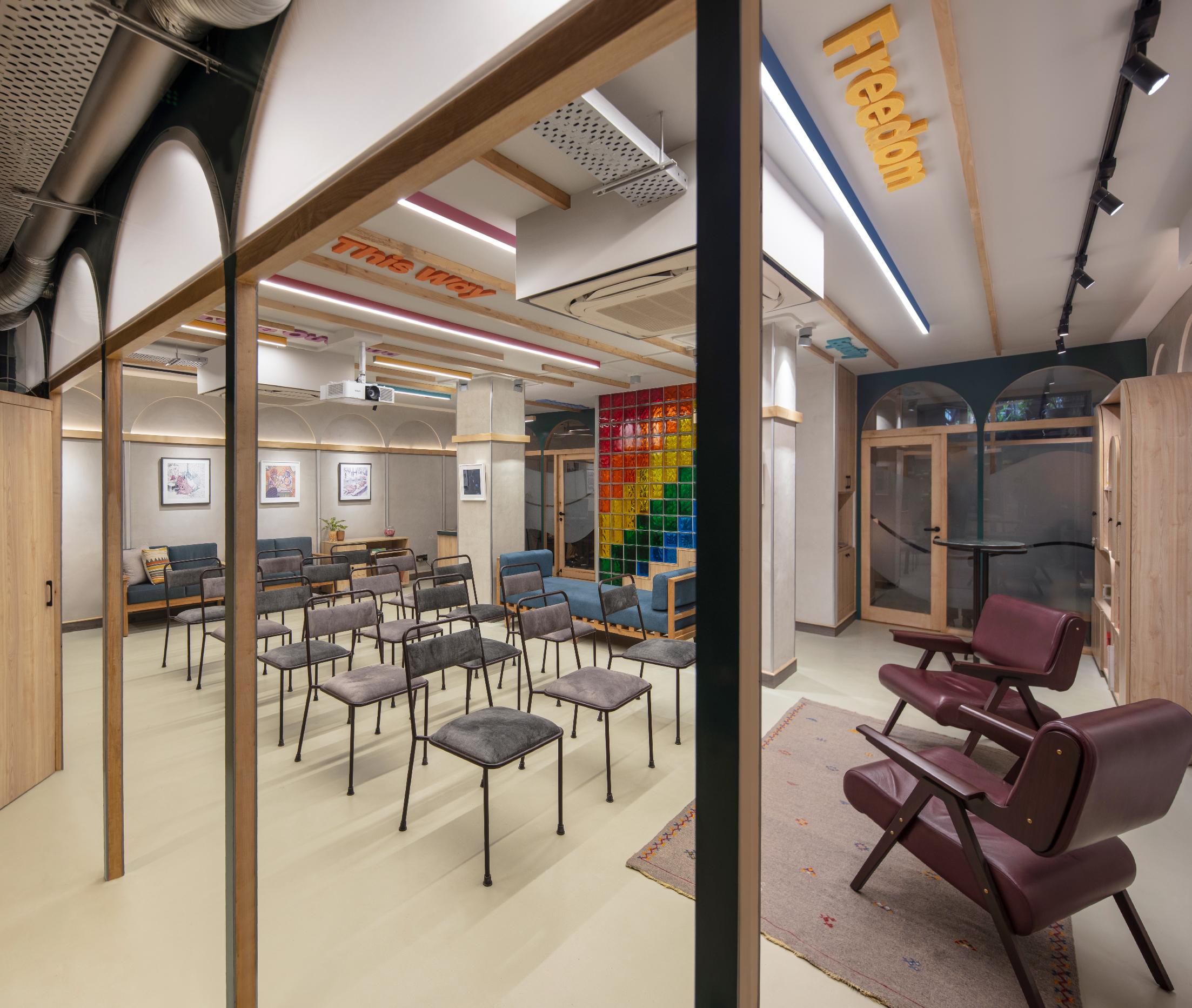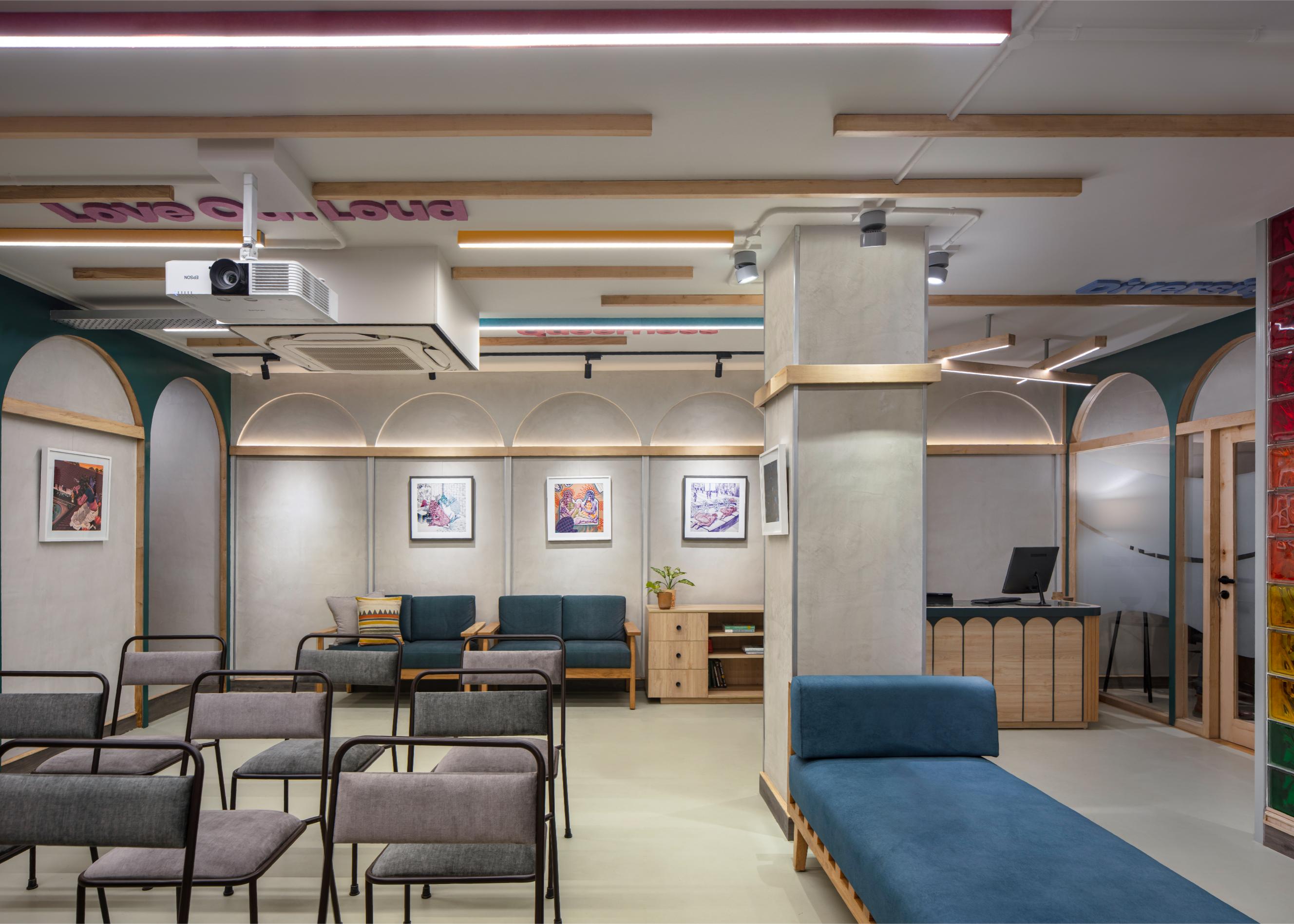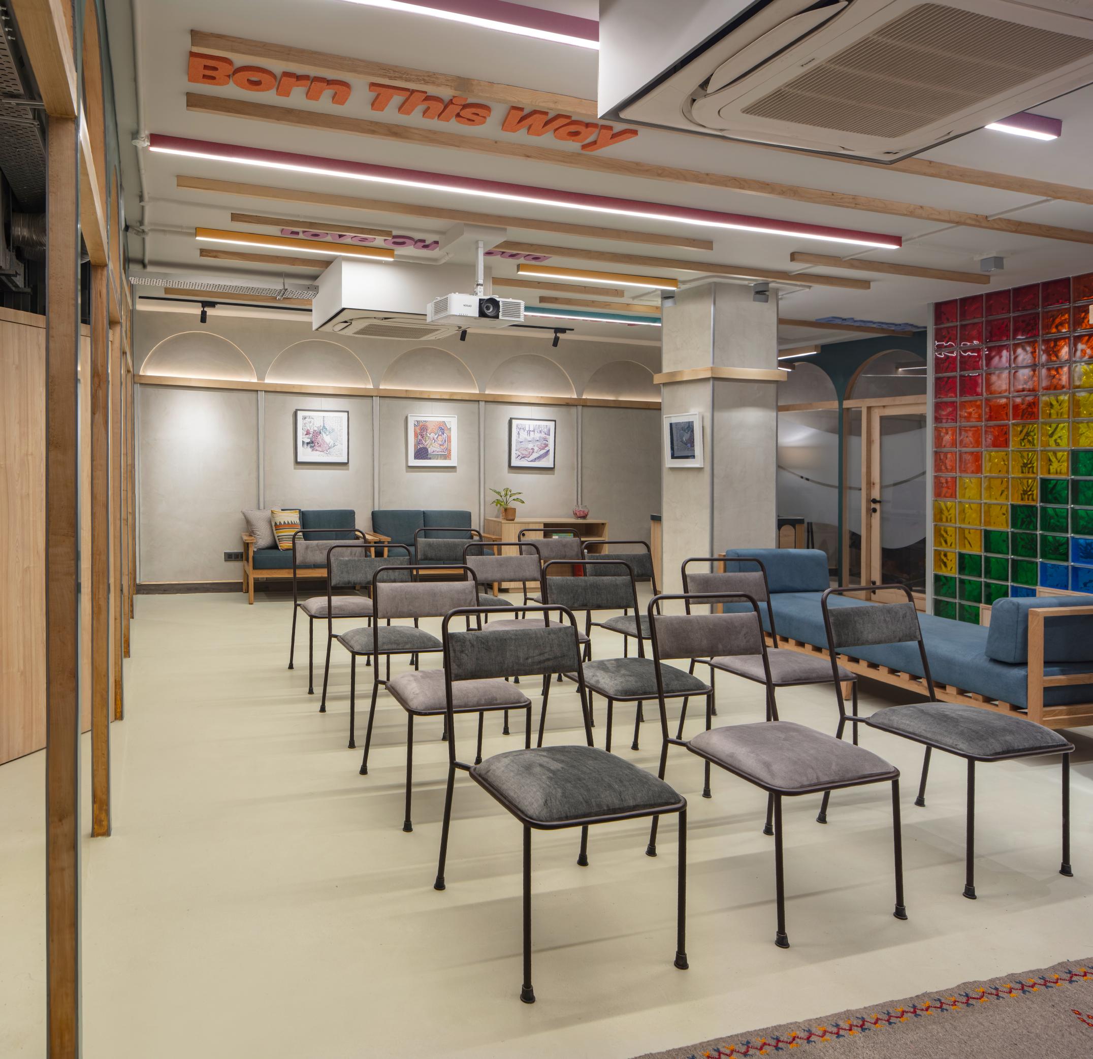 The LGBTQIA+ Centre is a pioneering initiative in India. The brief was to create a multi-functional and multipurpose community space that could support diverse activities such as community gatherings, screenings, book readings, performances and discussions under one roof while simultaneously offering free counselling and medical advice to queer individuals and their families.