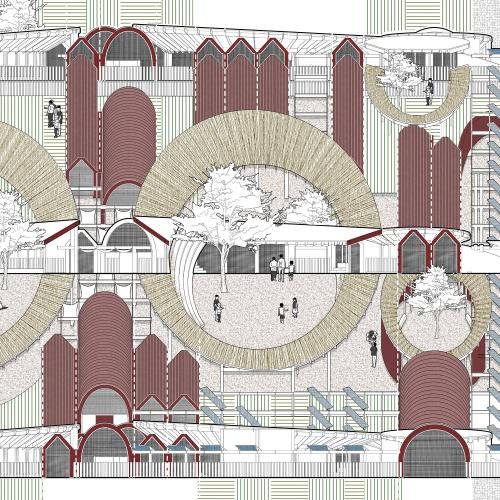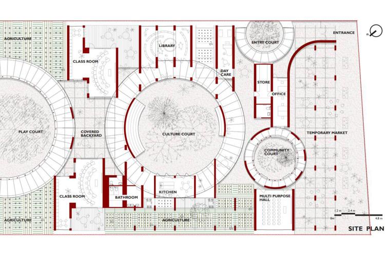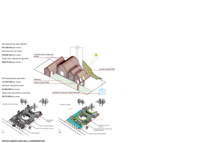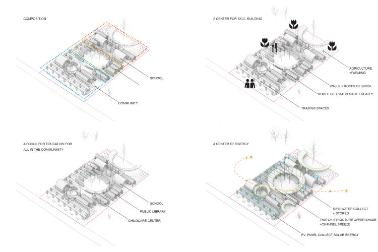 The learning center is conceived as an inclusive space which is self-sufficient and supports the larger community around.