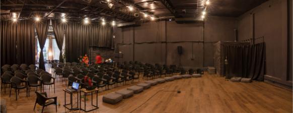 Upon entering the 4,000 sq. ft warehouse, one is welcomed into a large double-height rectilinear space that envelopes the premises of the theatre. A bar cum café section sets an informal atmosphere for the audience members as well as the performing artists to engage in, prior to or after the performances. The stage area in the rear of the built portion is separated from the café with the means of a curtain which is a practical method of creating a distinction between the program’s functions. The language of the space was kept organic in its essence with the employment of locally available materials which exudes a vibe of ease into the space whilst unlatching from superfluous vanity typical of performance arts venues.