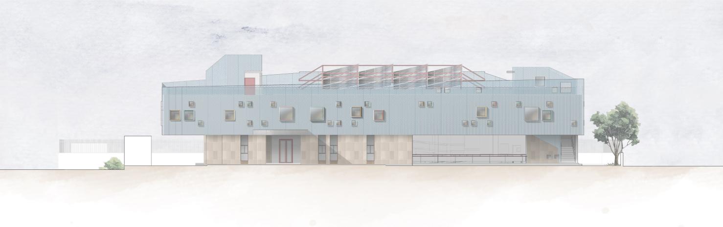 The planned layout has been envisioned as a winding journey of sorts that begins at the basement level, snakes its way across the built volume using the ramp & staircases as a spine and culminates in the looped sky-field which allows the children to connect with the sky above.