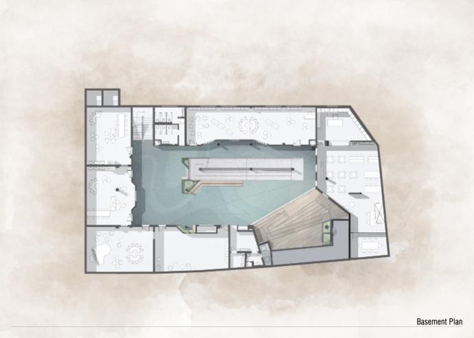 The basement has been designed with the intention of acting as a social arena that is functional beyond active school hours. The amphitheater occupies a pivotal position under the shade of the looming canopy of classrooms overhead, cascading from the ground to the basement level.