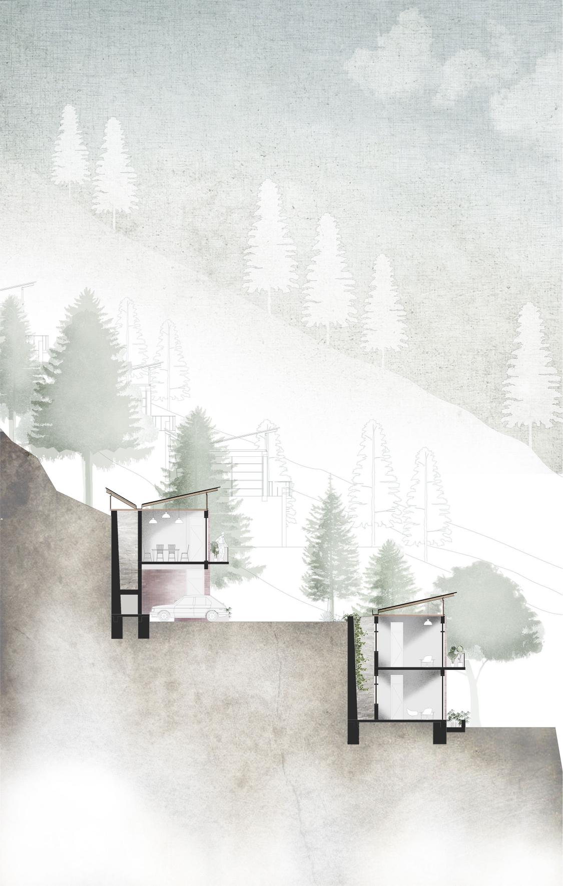 The Saat Taal Housing development has been tailored design-wise to foster a sense of existence in the bounds of nature, rather than erecting spaces that pose as independent cynosures in the natural context. The conception of the framework at site expounds the need for a coherent alliance between the naturally occurring site conditions & functional requirements that need to be established through design.