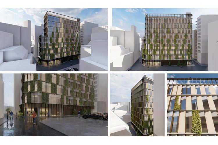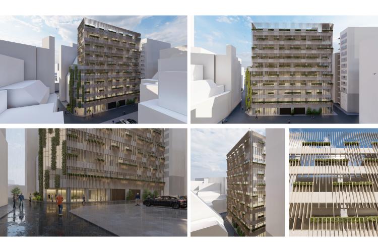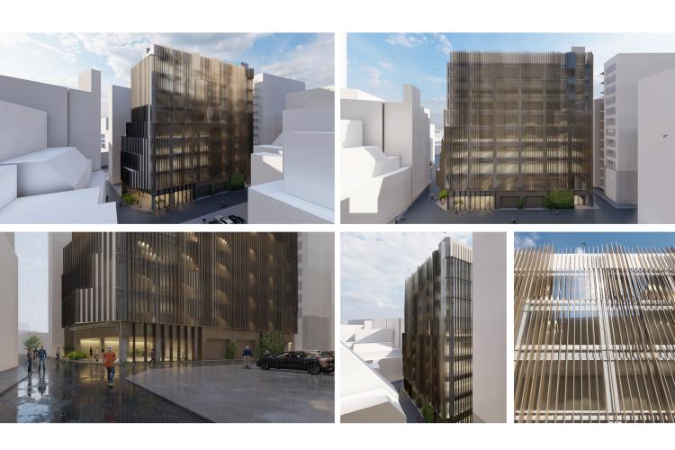 Because height controls along the northern street secure open sightlines, the orientation and placement of openings are optimized to provide tenants’ workspaces with views toward the intersection. Furthermore, based on thermal-environment simulations, the glazing ratio and envelope composition are carefully calibrated. High-performance exterior panels are applied to the upper levels, where western solar gain is greatest, reducing heat load while improving environmental performance and workplace comfort. The project integrates urban connectivity, streetscape continuity, and environmental responsiveness into a single architectural proposal.
