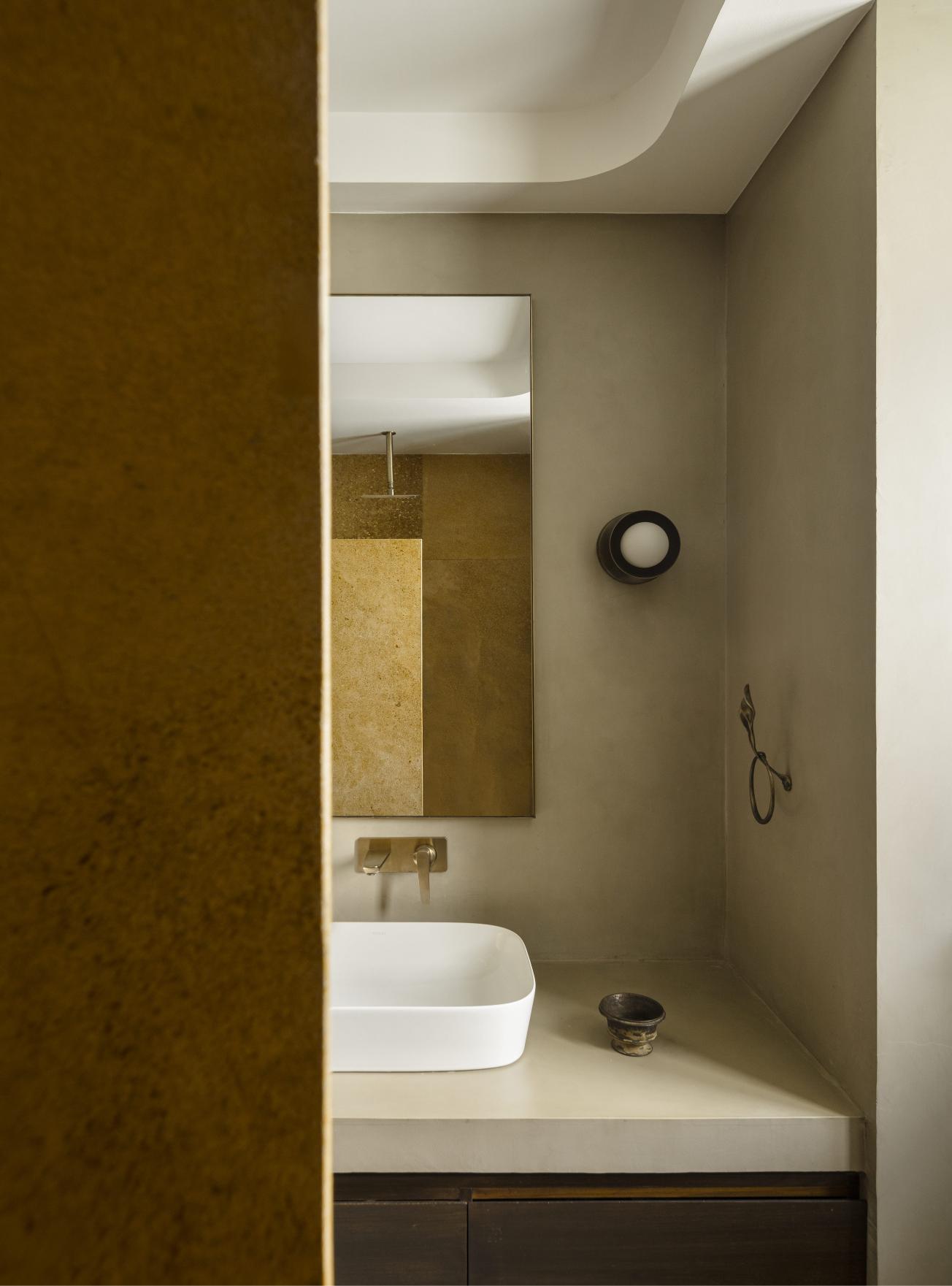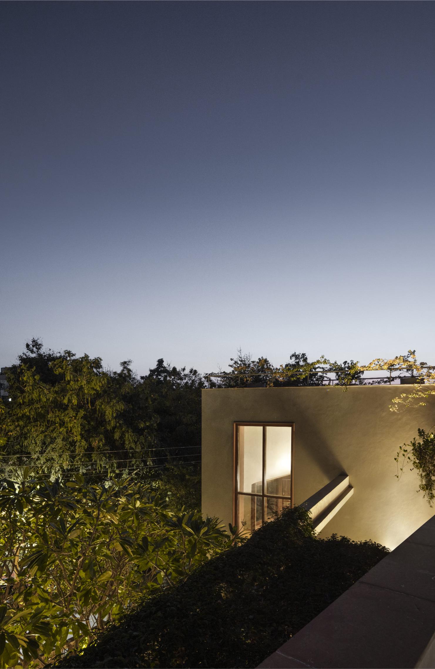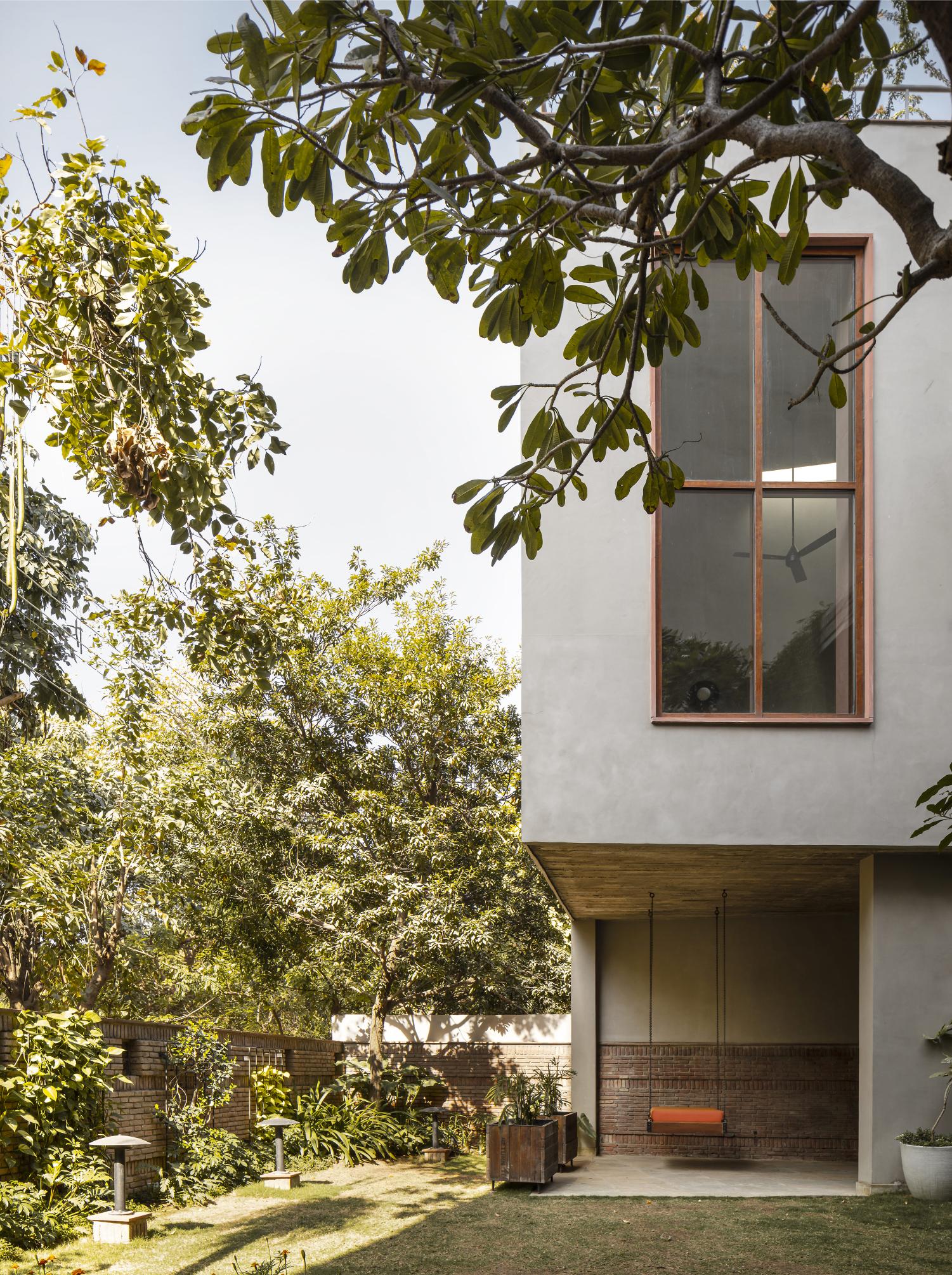 Instead of demolition, the architects undertook a profound transformation, converting the existing house into an inward-looking courtyard home. This reorientation, centered around an old ‘Champa’ tree, created a stepped courtyard with gardens and terraces.